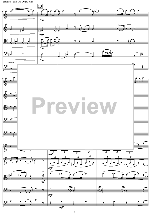 Digital Sheet Music for Satin Doll - Score by Duke Ellington, Billy Strayhorn, William Zinn scored for String Ensemble; id:454224