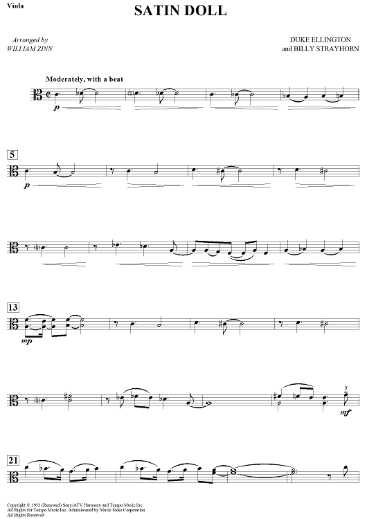 "Satin Doll - Viola" Sheet Music by Duke Ellington
