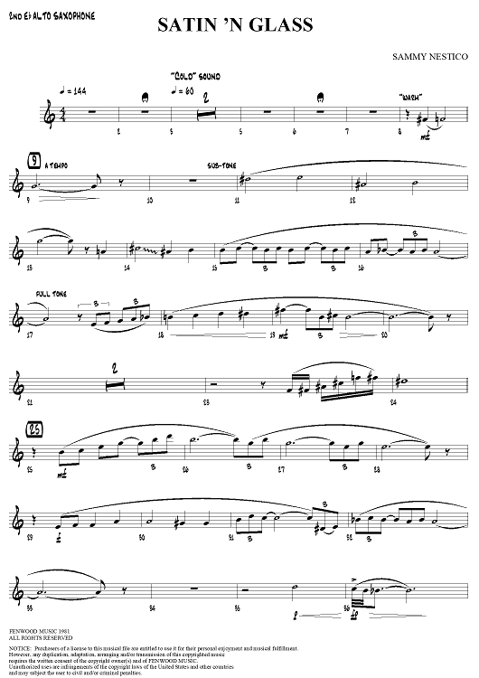 "Satin 'N Glass - Alto Saxophone 2" Sheet Music by Sammy Nestico