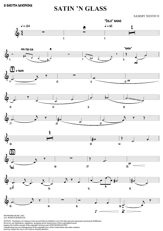 "Satin 'N Glass - Baritone Saxophone" Sheet Music by Sammy Nestico