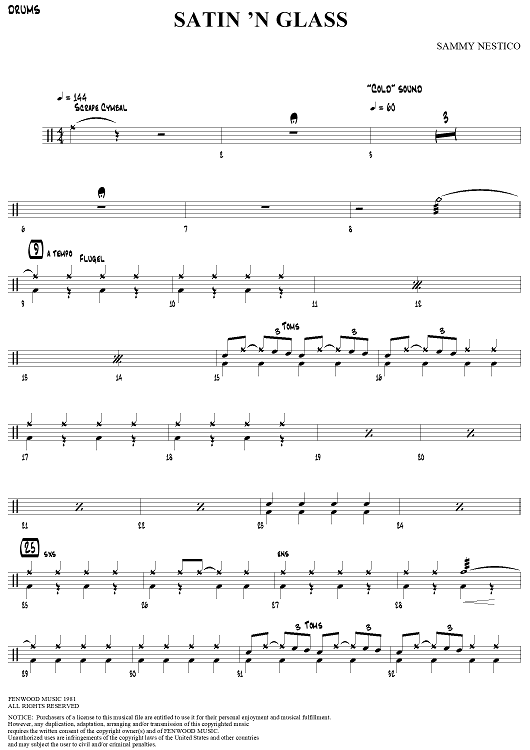 "Satin 'N Glass - Drums" Sheet Music by Sammy Nestico