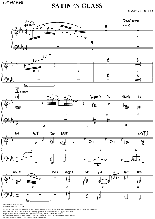 "Satin 'N Glass - Electric Piano" Sheet Music by Sammy Nestico