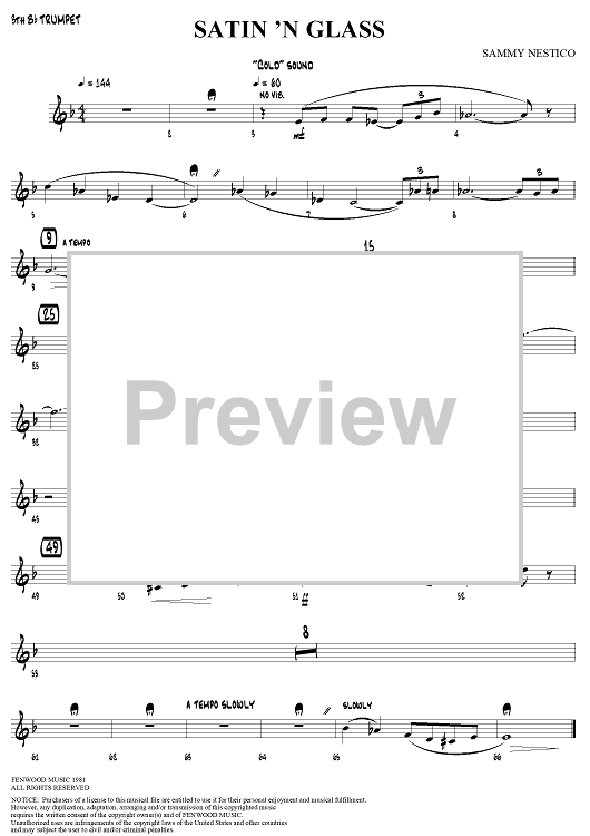"Satin 'N Glass - Trumpet 3" Sheet Music by Sammy Nestico