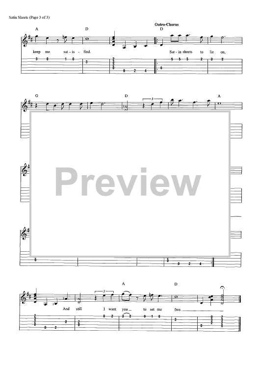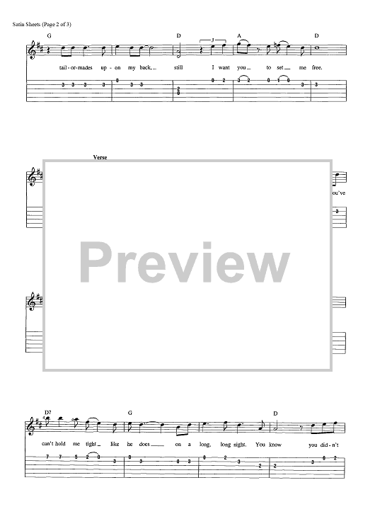 Digital Sheet Music for Satin Sheets by John E. Volinkaty, Jeanne Pruett scored for Easy Guitar Tab/Vocal/Chords; id:456837