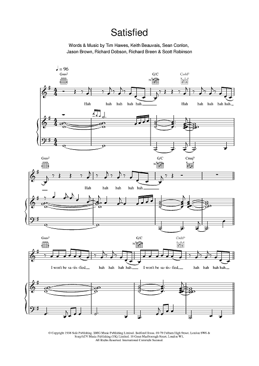 Digital Sheet Music for Satisfied by Five scored for Piano/Vocal/Chords; id:376700