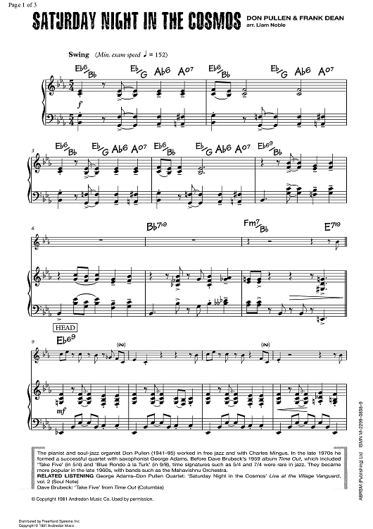 Digital Sheet Music for Saturday Night in the Cosmos by , Frank Dean, Liam Noble, Don Pullen scored for Trombone 5/Piano; id:355528