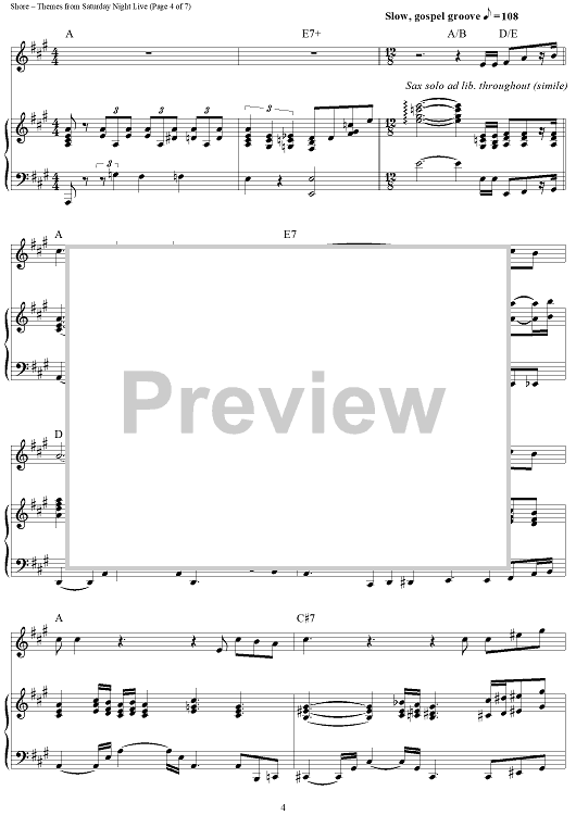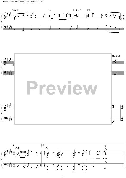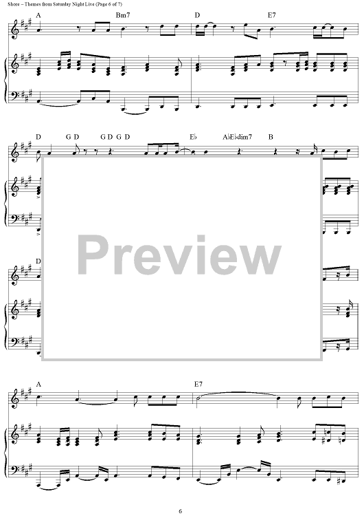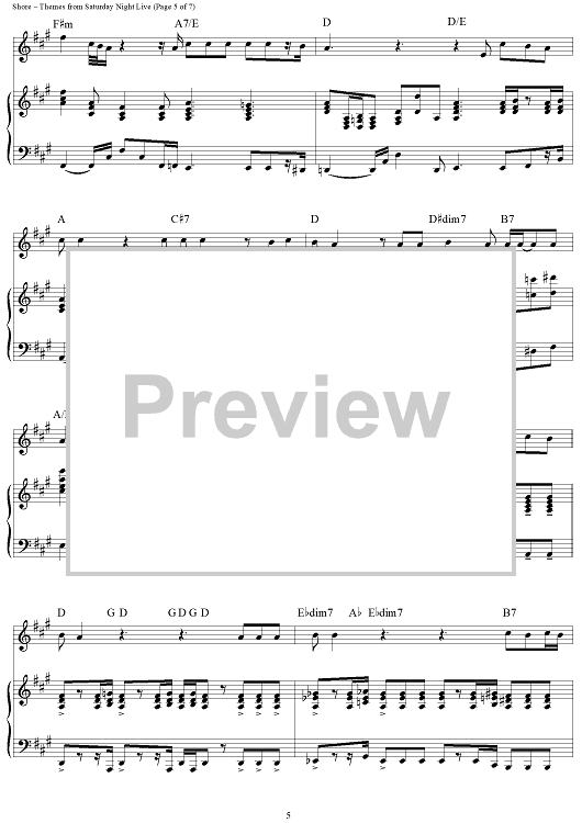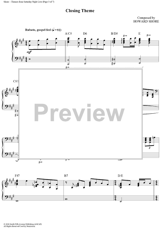 Digital Sheet Music for Saturday Night Live (Opening and Closing Themes) by Howard Shore scored for Piano Solo; id:359857
