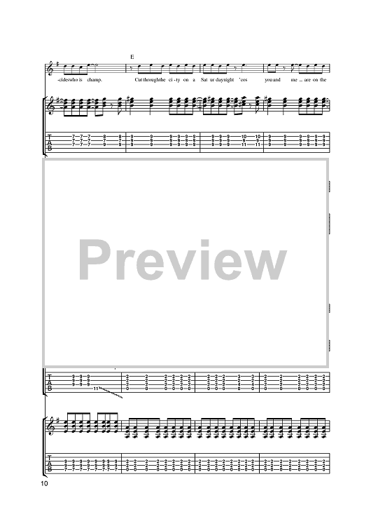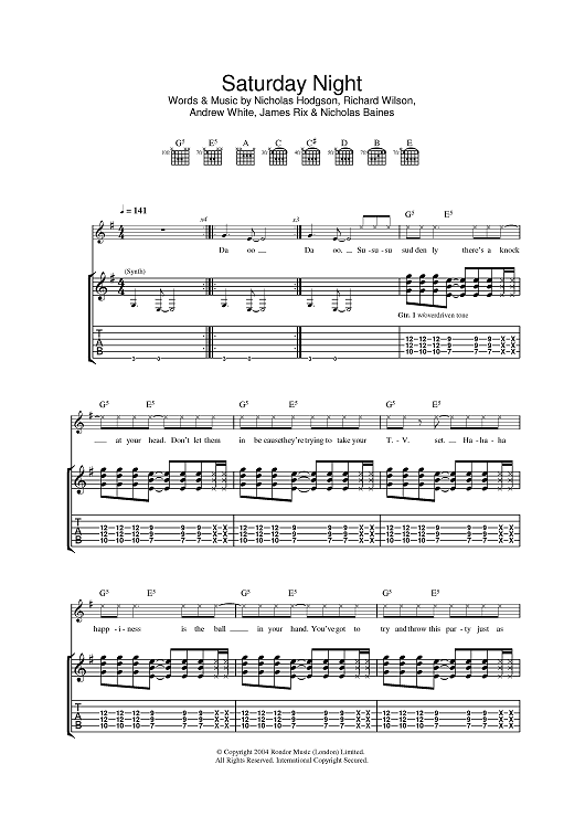 Digital Sheet Music for Saturday Night by Nick Baines, Nick Hodgson, Kaiser Chiefs, Simon Rix, Andrew White, Ricky Wilson scored for Guitar Tab; id:385155