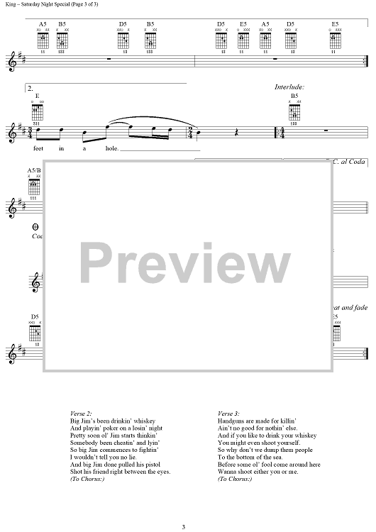 Digital Sheet Music for Saturday Night Special by Lynyrd Skynyrd, Ed King, Ronnie Van Zant scored for Lead Sheet; id:283494