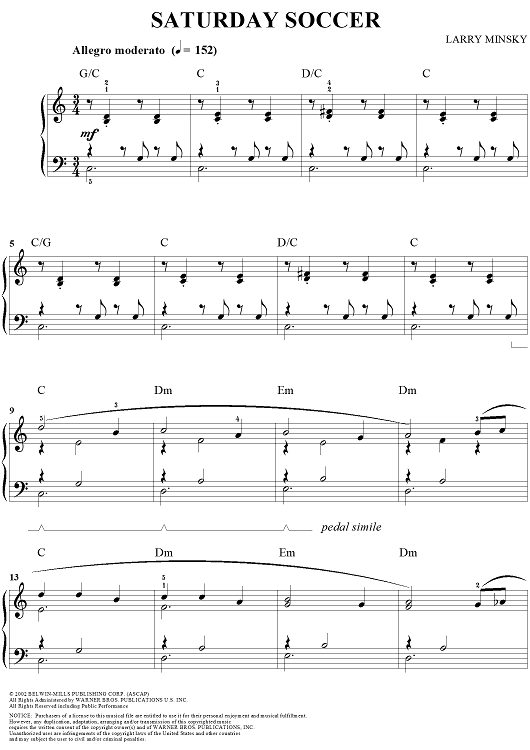 Digital Sheet Music for Saturday Soccer by Larry Minsky scored for Easy Piano; id:293646