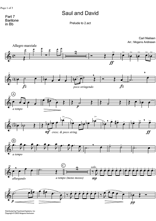 Digital Sheet Music for Saul and David - Prelude to Act 2 - Baritone by Mogens Andresen, Carl Nielsen scored for Brass Ensemble; id:331993