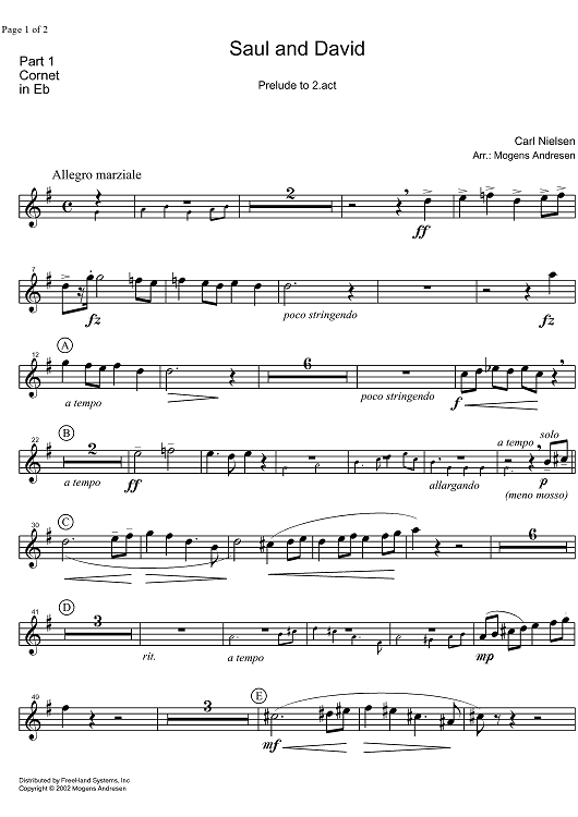 "Saul and David - Prelude to Act 2 - E-flat Cornet" Sheet Music by Carl Nielsen