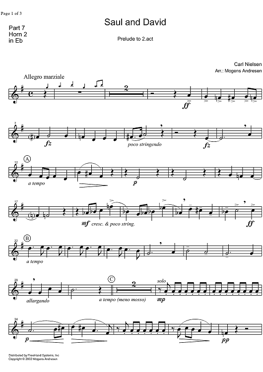 Digital Sheet Music for Saul and David - Prelude to Act 2 - Horn in E-flat 2 by Mogens Andresen, Carl Nielsen scored for Brass Ensemble; id:331991
