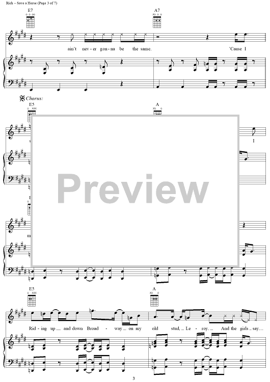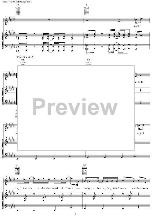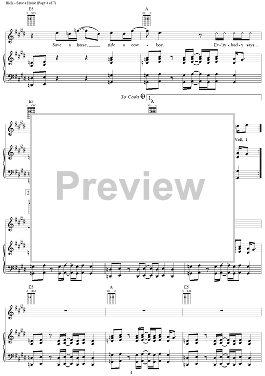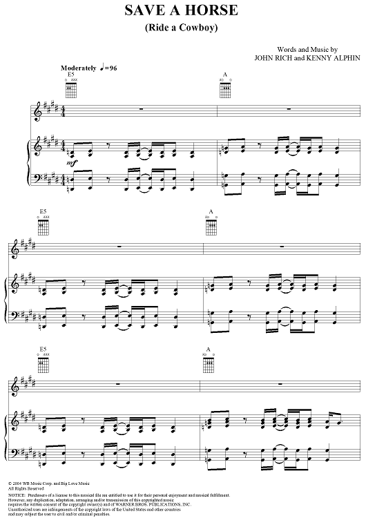 Digital Sheet Music for Save A Horse (Ride A Cowboy) by John Rich, Kenny Alphin, Big & Rich scored for Piano/Vocal/Chords; id:308236