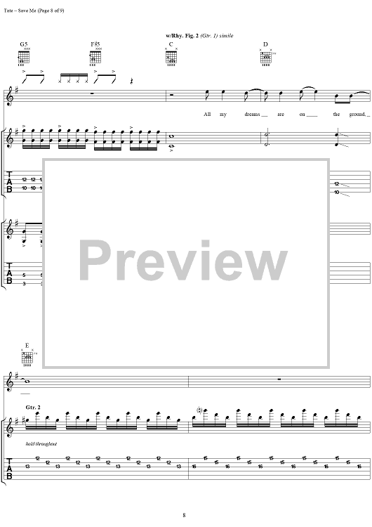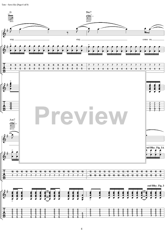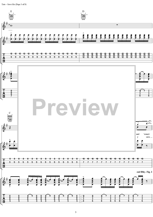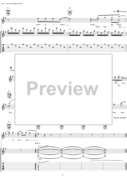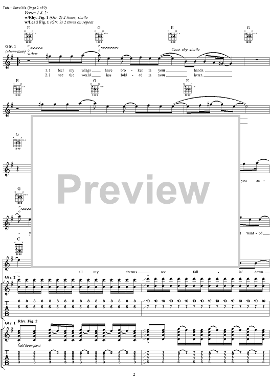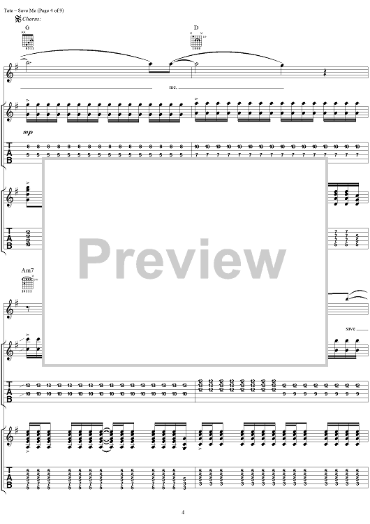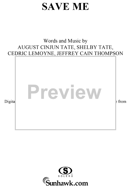 Digital Sheet Music for Save Me by August Cinjun Tate, Shelby Tate, Cedric Lemoyne, Jeffrey Cain Thompson, Gregory Slay, Remy Zero scored for Guitar Tab/Vocal; id:295386
