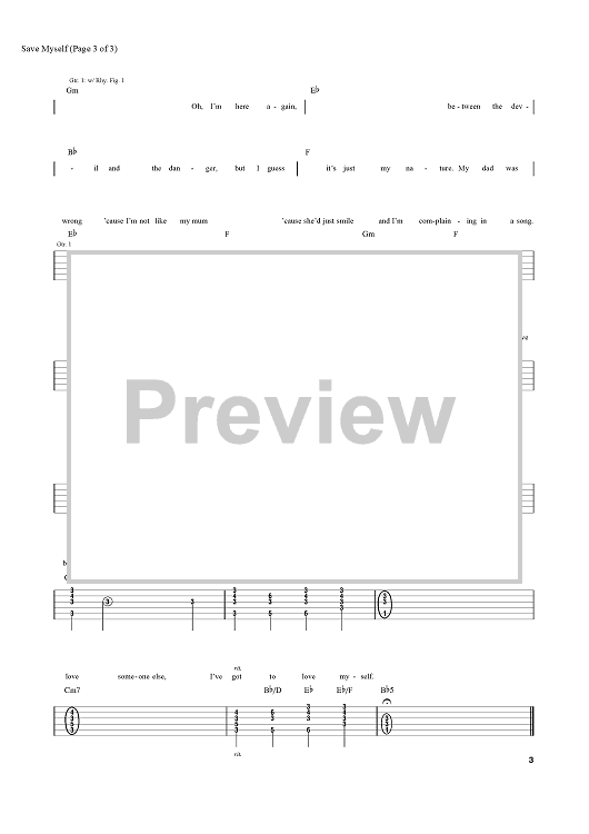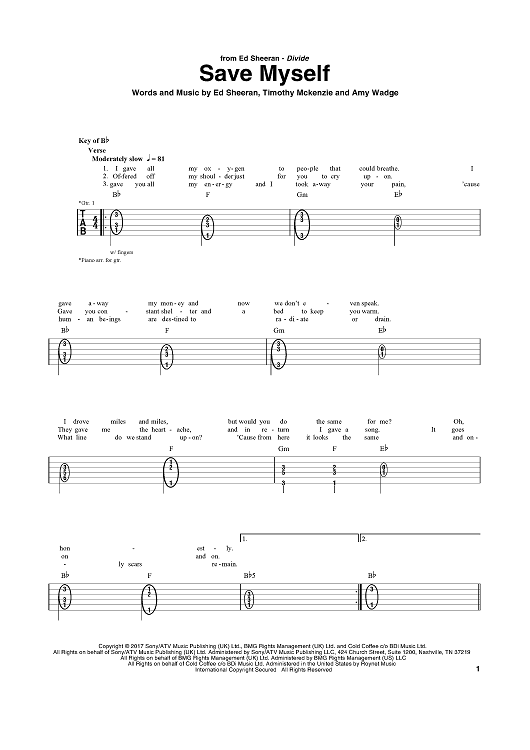 Digital Sheet Music for Save Myself by Ed Sheeran, Amy Wadge, Timothy McKenzie scored for Guitar Tab/Vocal/Chords; id:464604