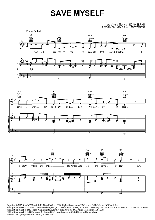 Digital Sheet Music for Save Myself by Ed Sheeran, Amy Wadge, Timothy McKenzie scored for Piano/Vocal/Chords; id:464619