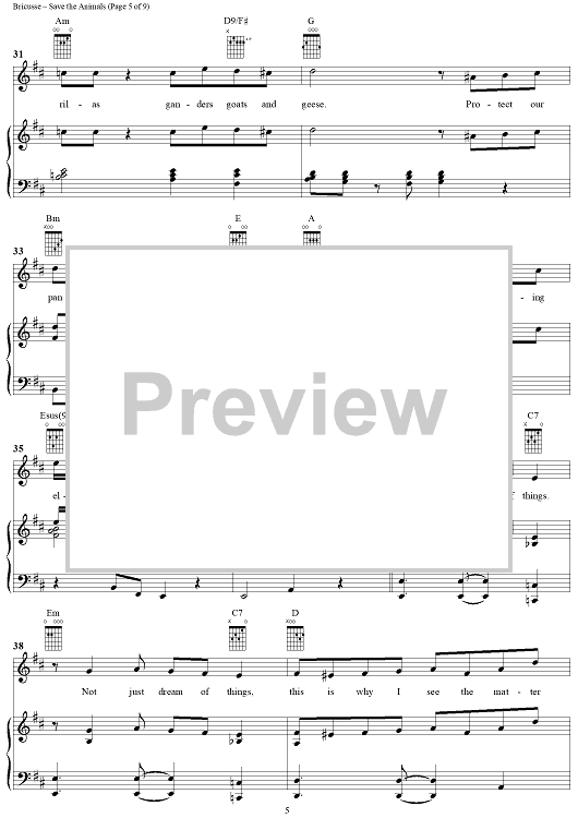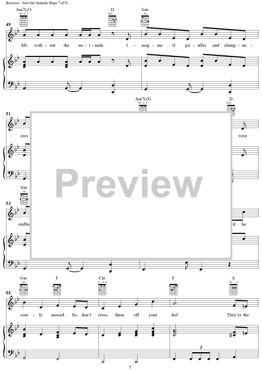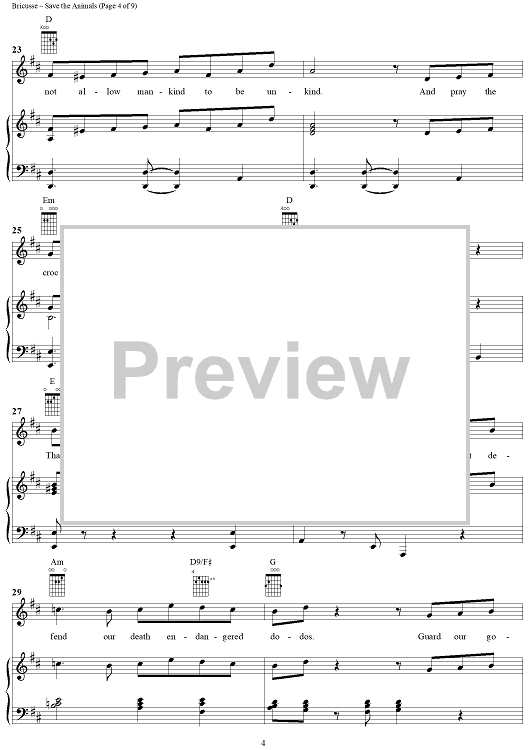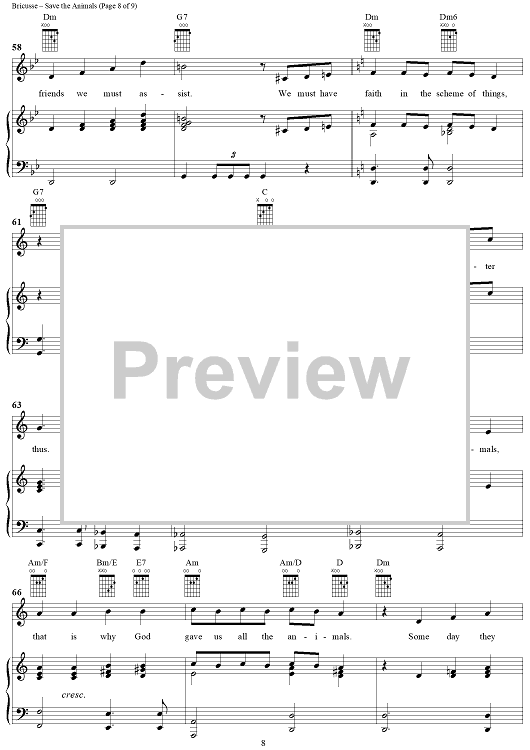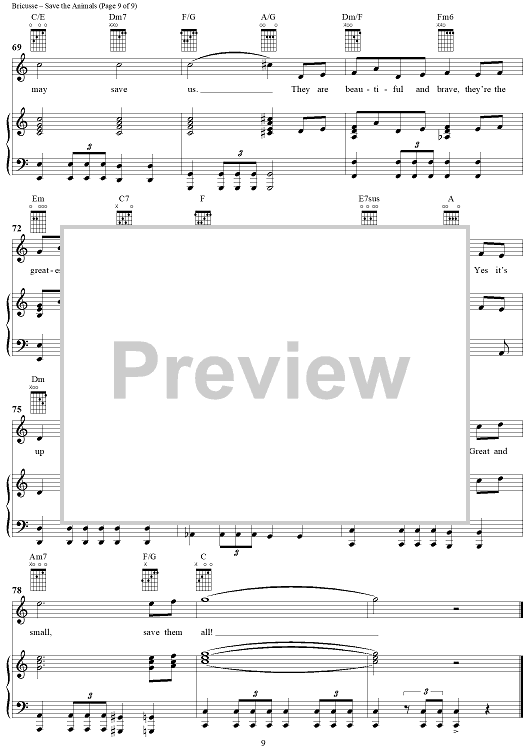 Digital Sheet Music for Save the Animals by Leslie Bricusse scored for Piano/Vocal/Chords; id:362833