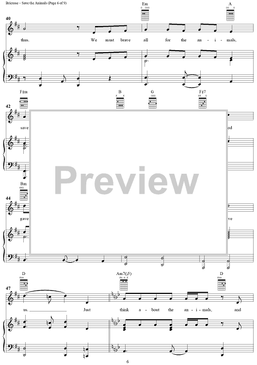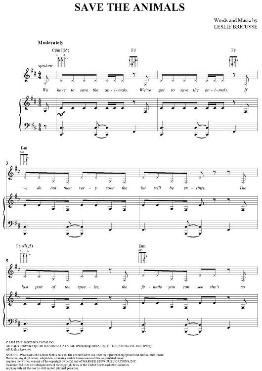 "Save the Animals" Sheet Music by Leslie Bricusse