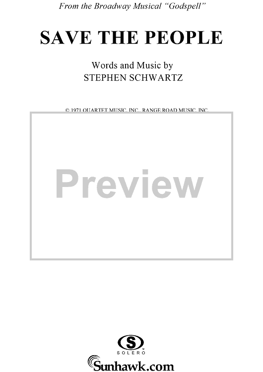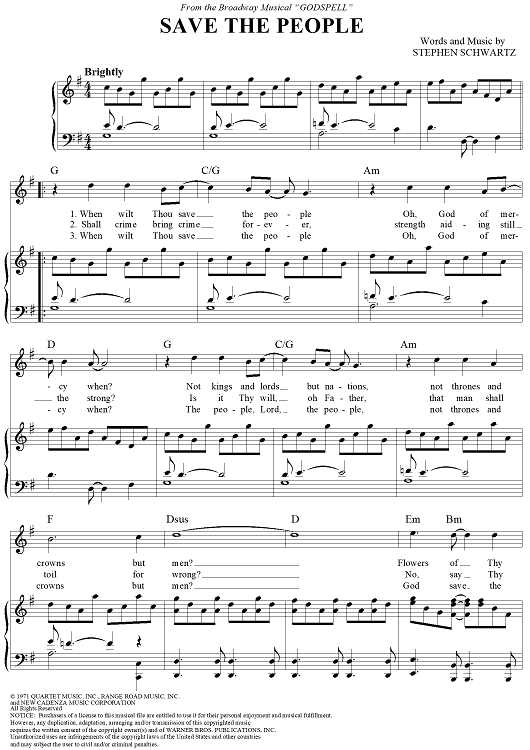 Digital Sheet Music for Save the People by Stephen Schwartz scored for Piano/Vocal/Chords; id:112776