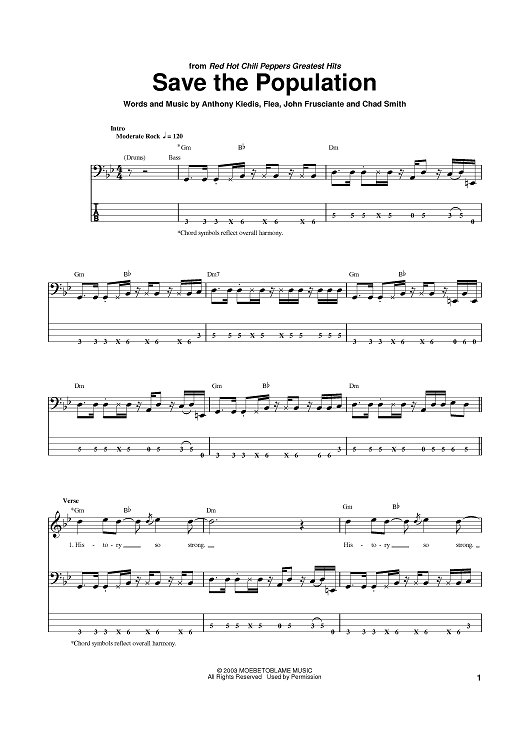 Digital Sheet Music for Save The Population by Flea, John Frusciante, Anthony Kiedis, Red Hot Chili Peppers scored for Bass Tab; id:374155