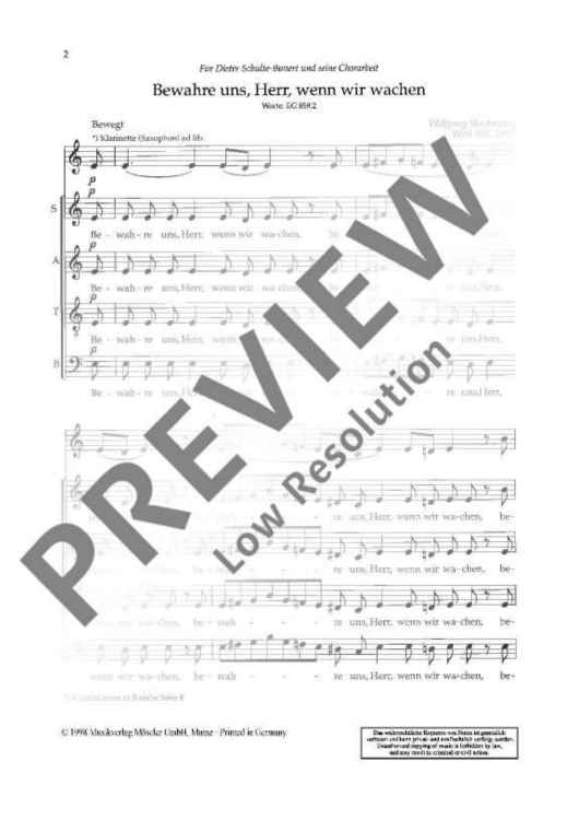 Digital Sheet Music for Save us, Lord, while we are awake - Choral Score by Wolfgang Stockmeier scored for Mixed Choir (satb); Saxophone Or Clarinet Ad Libitum; id:494634