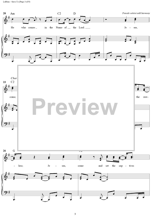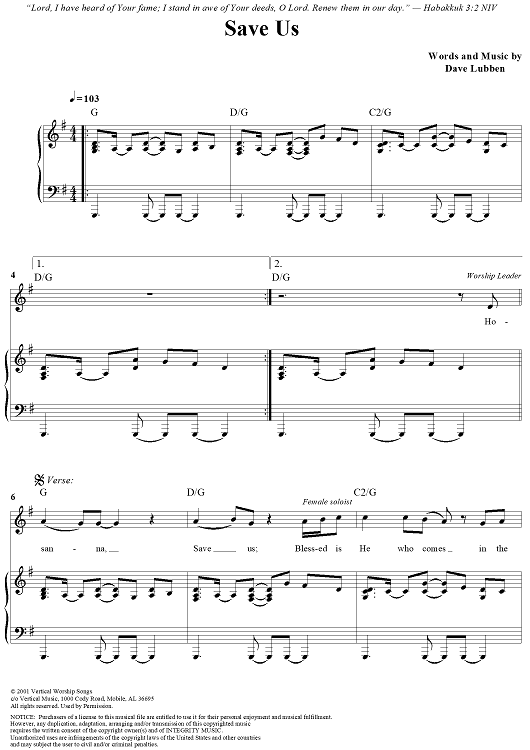 Digital Sheet Music for Save Us by Dave Lubben scored for Mixed Chorus/Piano; id:308873