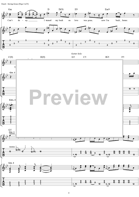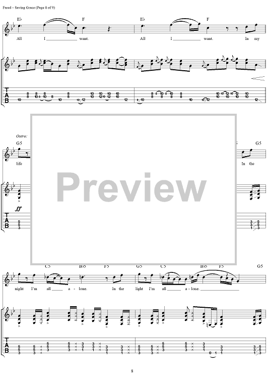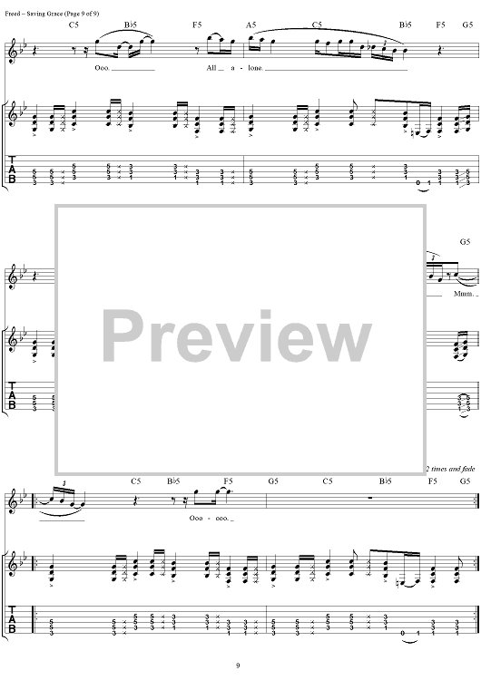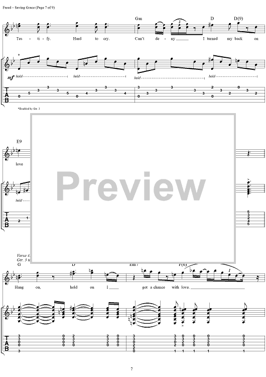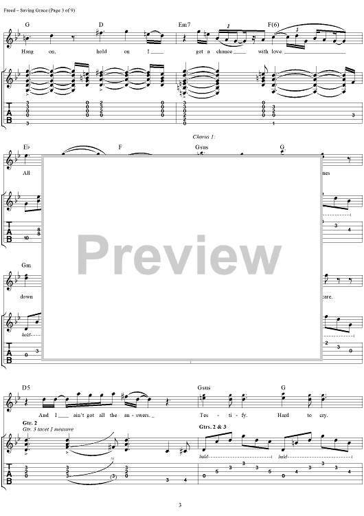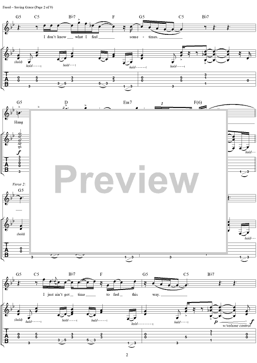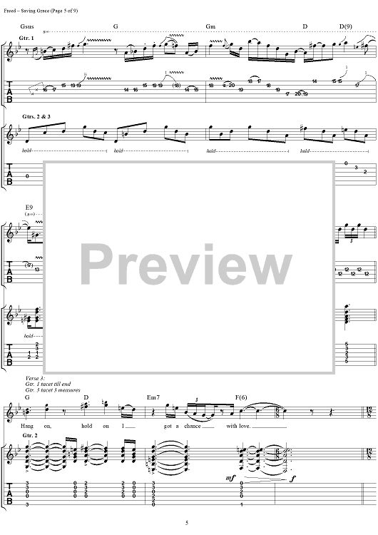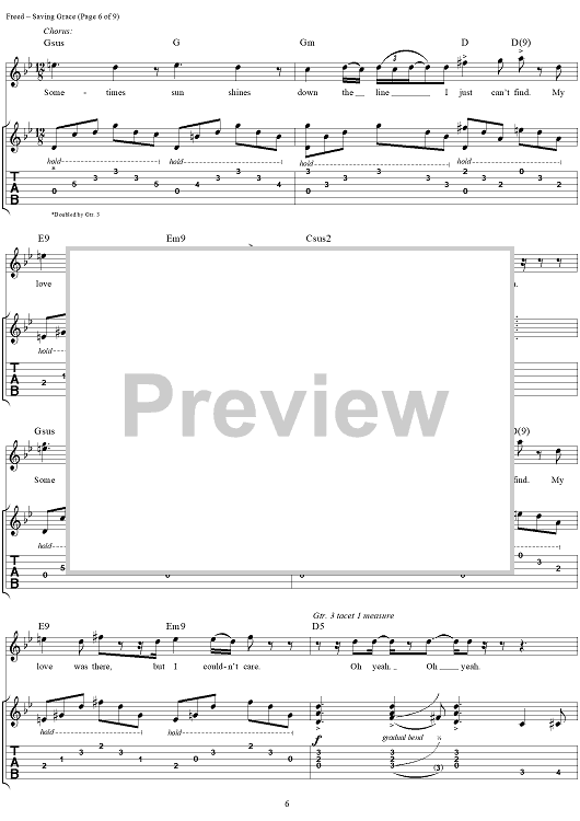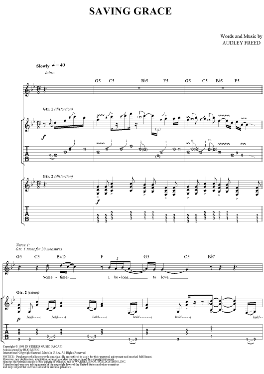 Digital Sheet Music for Saving Grace by Audley Freed, Cry of Love scored for Guitar Tab/Vocal; id:269461
