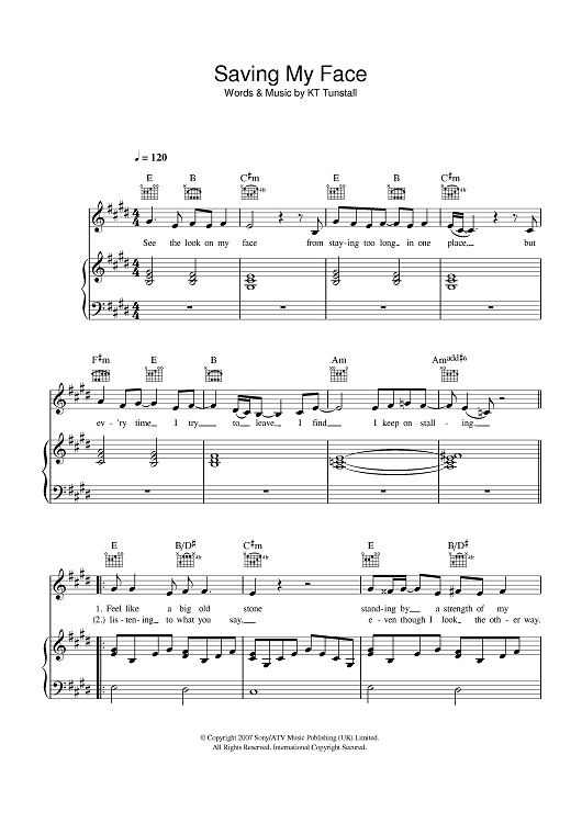 Digital Sheet Music for Saving My Face by KT Tunstall scored for Piano/Vocal/Chords; id:401664