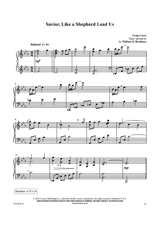 "Savior, Like A Shepherd Lead Us" Sheet Music by William B. Bradbury