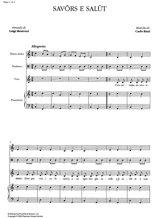 "Savôrs e salût" Sheet Music by Carlo Rizzi