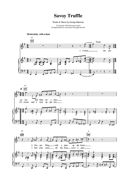 Digital Sheet Music for Savoy Truffle by The Beatles, George Harrison scored for Piano/Vocal/Chords; id:376787