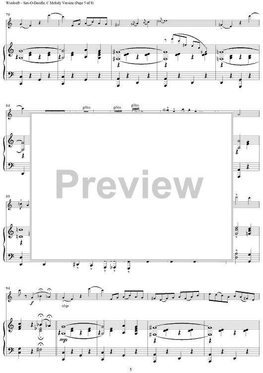 "Sax-O-Doodle - Piano Score (for C Melody Sax)" Sheet Music by Rudy Wiedoeft