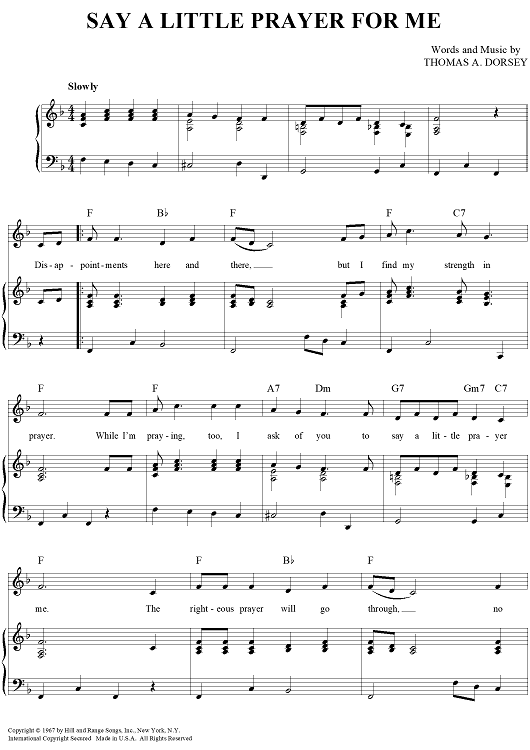 Digital Sheet Music for Say A Little Prayer For Me by Thomas A. Dorsey scored for Piano/Vocal/Chords; id:363084