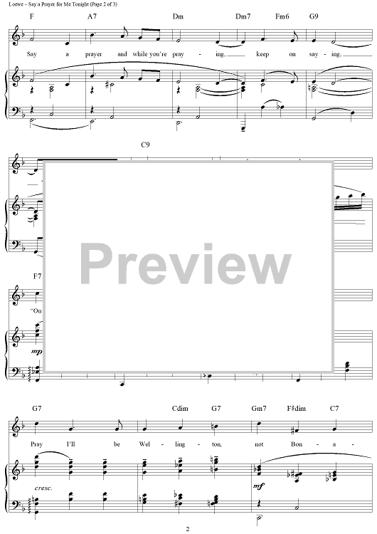 Digital Sheet Music for Say a Prayer for Me Tonight by Frederick Loewe, Alan Jay Lerner scored for Piano/Vocal/Chords; id:314338