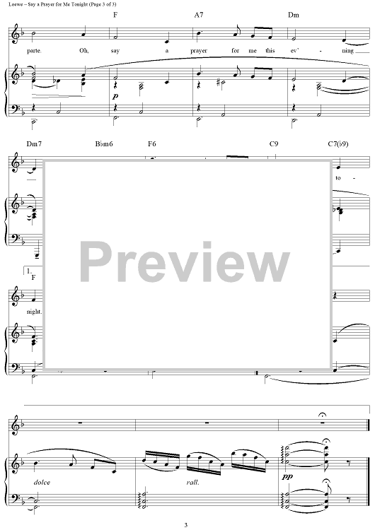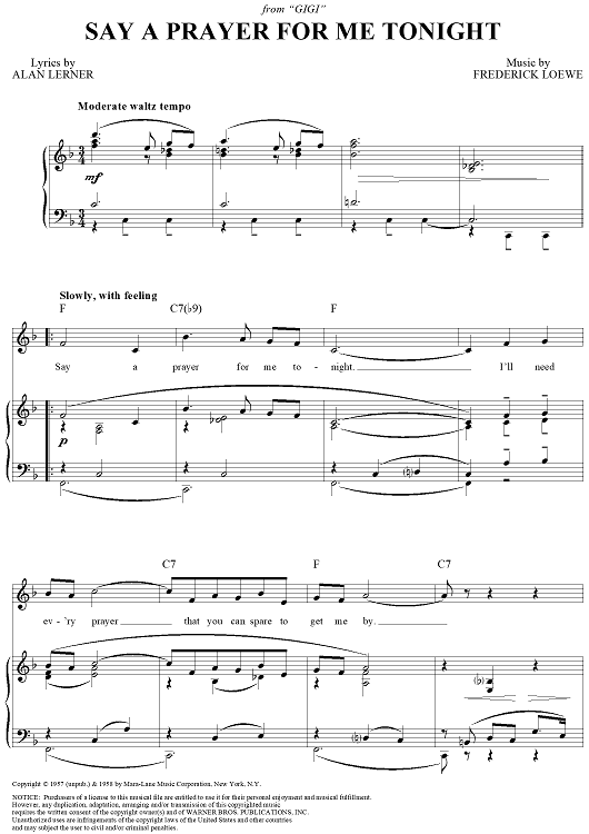 "Say a Prayer for Me Tonight" Sheet Music by Frederick Loewe