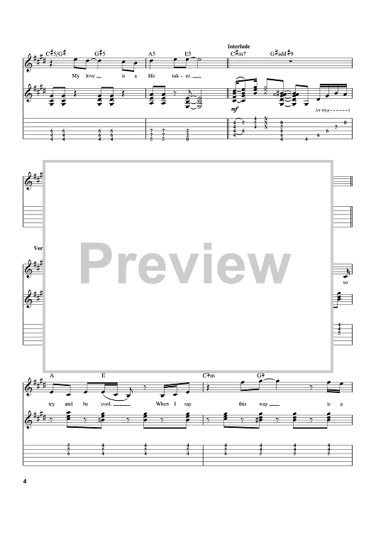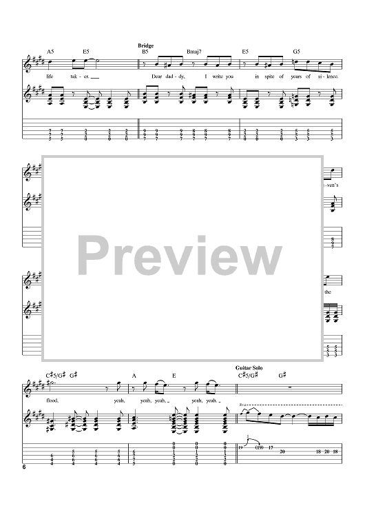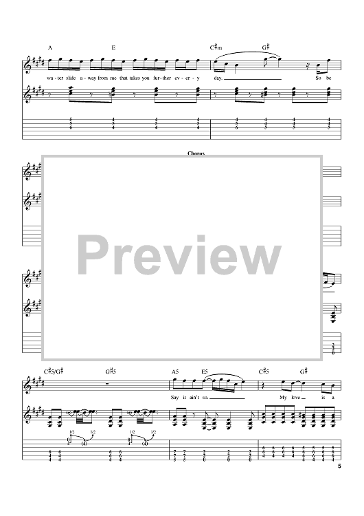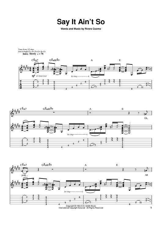 Digital Sheet Music for Say It Ain't So by Rivers Cuomo, Weezer scored for Guitar Tab; id:374228