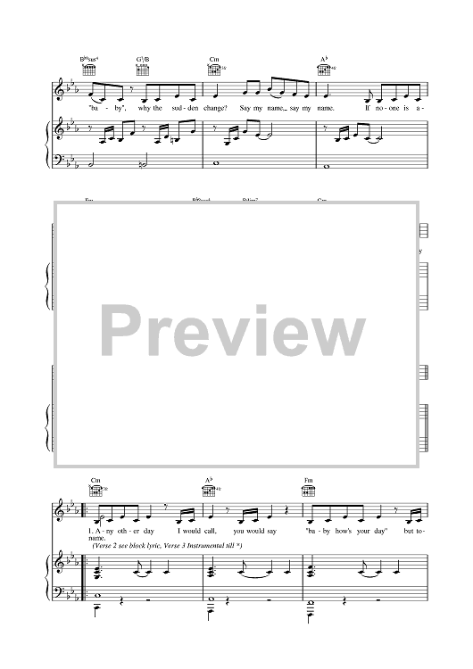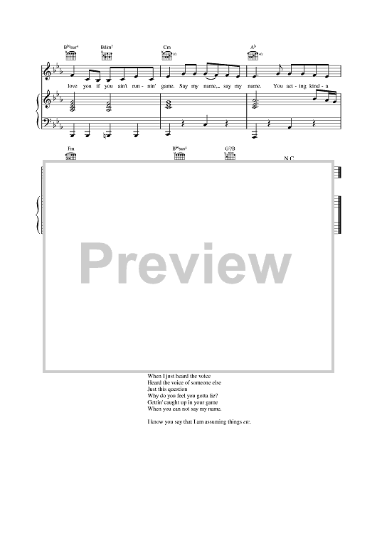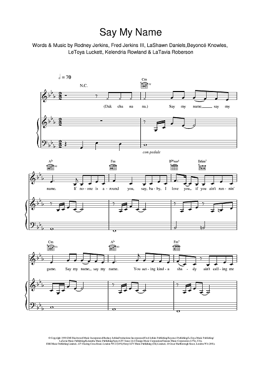Digital Sheet Music for Say My Name by Destiny's Child scored for Piano/Vocal/Chords; id:377403