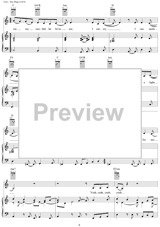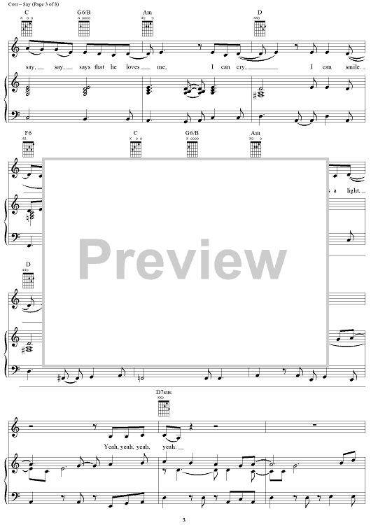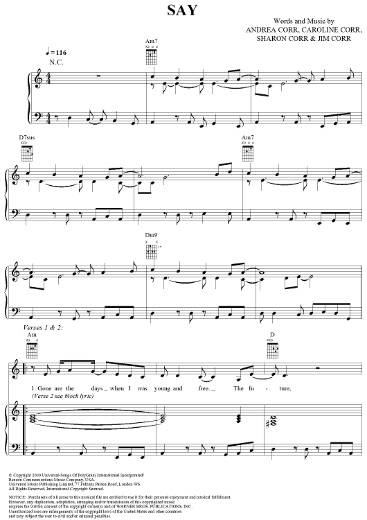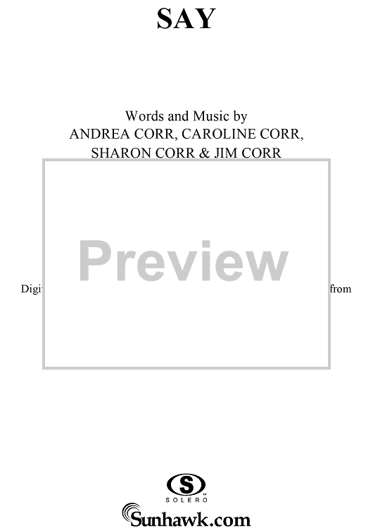 Digital Sheet Music for Say by The Corrs, Derek Jones, Sharon Corr, Caroline Corr, Andrea Corr, Jim Corr scored for Piano/Vocal/Chords; id:287322