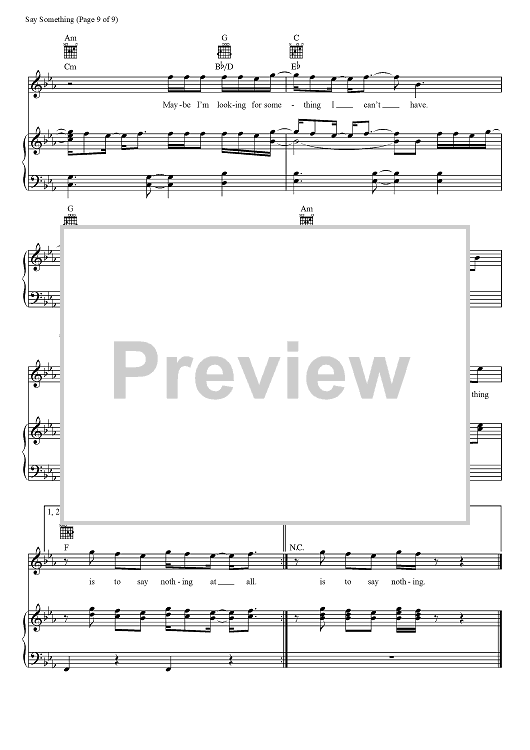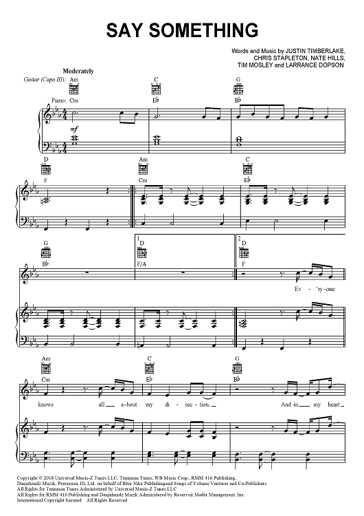 Digital Sheet Music for Say Something by Tim Mosley, Nate Hills, Chris Stapleton, Larrance Dopson, Justin Timberlake scored for Piano/Vocal/Chords; id:466055