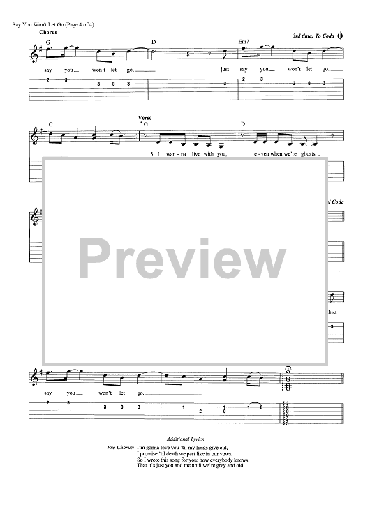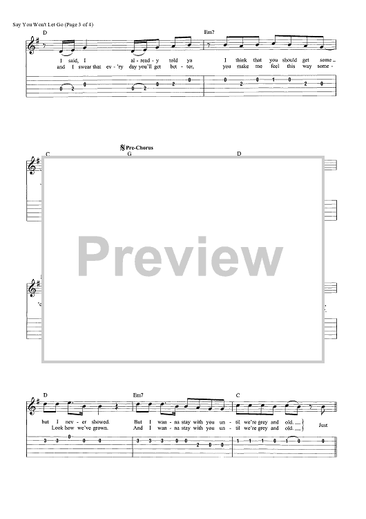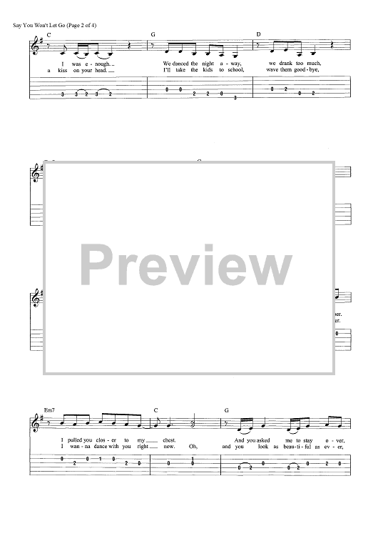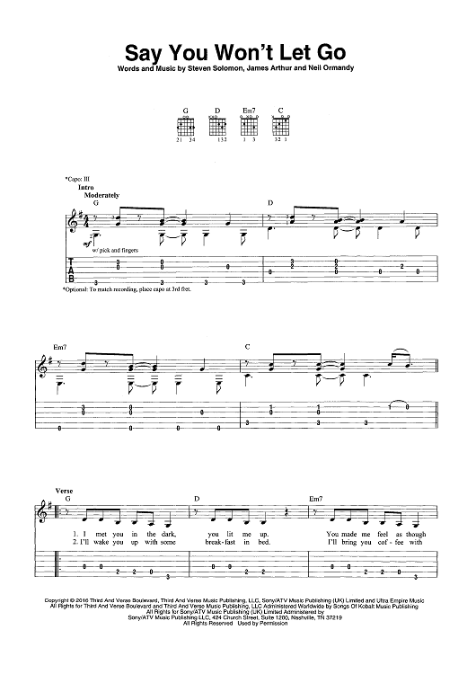 Digital Sheet Music for Say You Won't Let Go by James Arthur, Neil Ormandy, Steve Solomon scored for Easy Guitar Tab/Vocal; id:465619