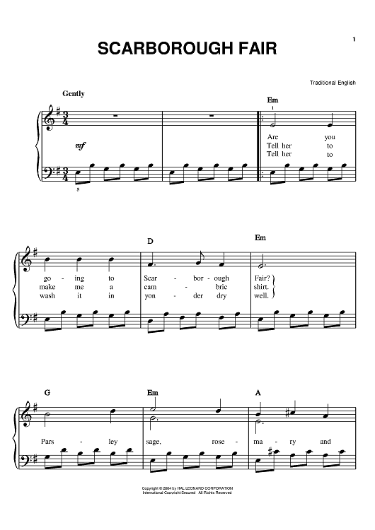 Digital Sheet Music for Scarborough Fair by scored for Easy Piano; id:373870