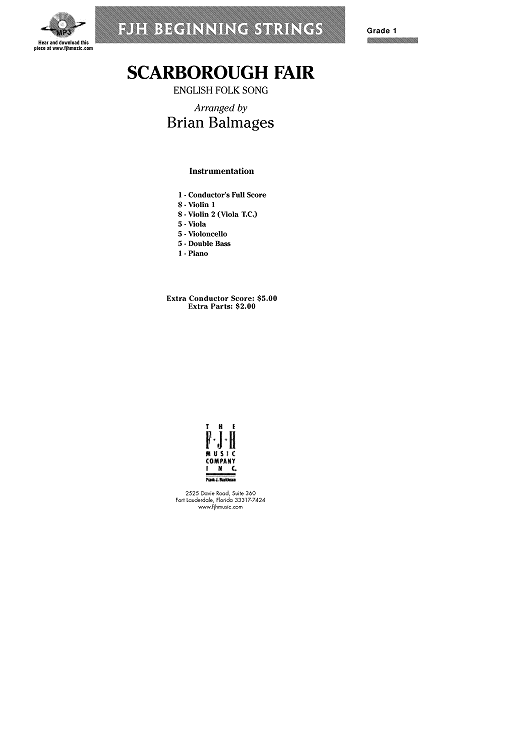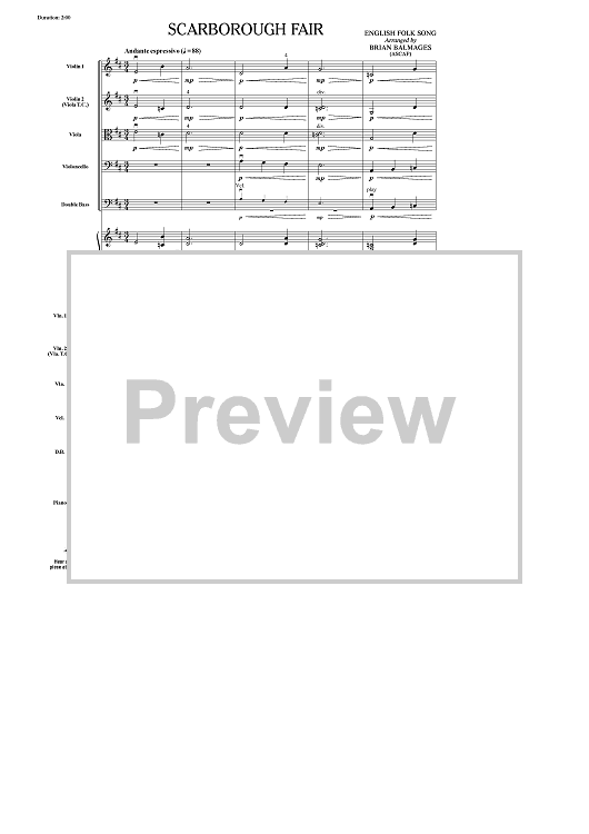 Digital Sheet Music for Scarborough Fair - Score by English Folk Song, Brian Balmages scored for Orchestra; id:411582