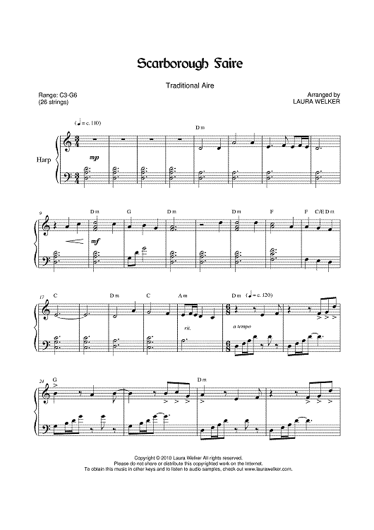 Digital Sheet Music for Scarborough Faire by Various, Traditional, Laura Welker scored for Lever Harp; id:417959