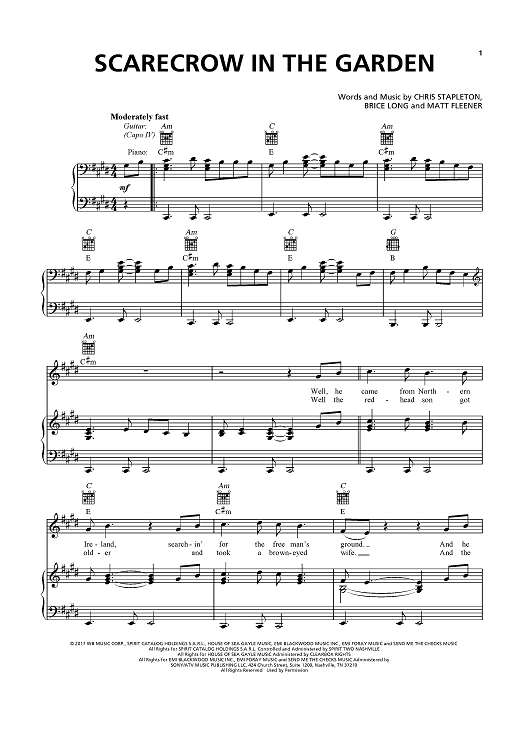Digital Sheet Music for Scarecrow In The Garden by Brice Long, Chris Stapleton, Matt Fleener scored for Piano/Vocal/Chords; id:465816