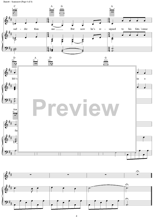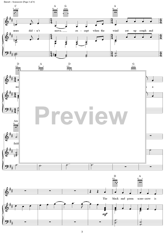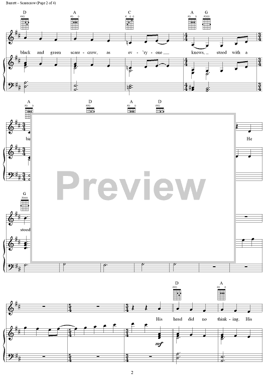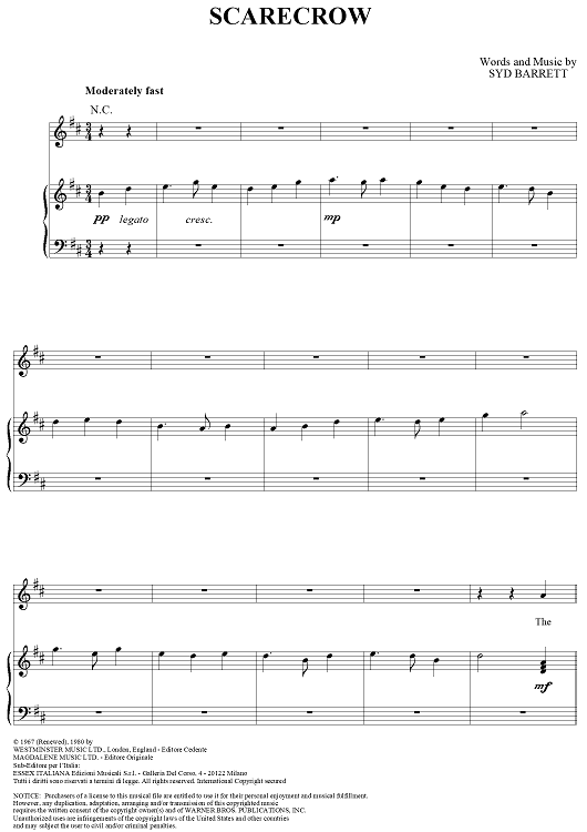 Digital Sheet Music for Scarecrow by Pink Floyd, Syd Barrett scored for Piano/Vocal/Chords; id:284269