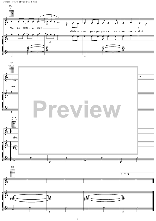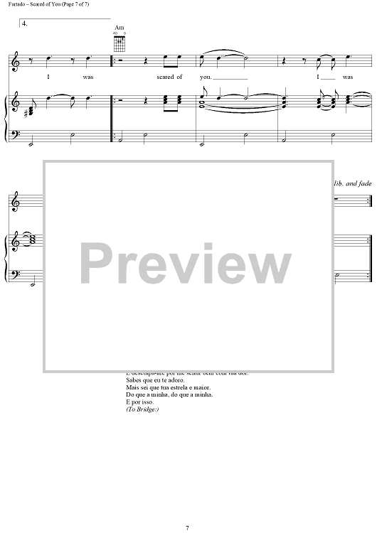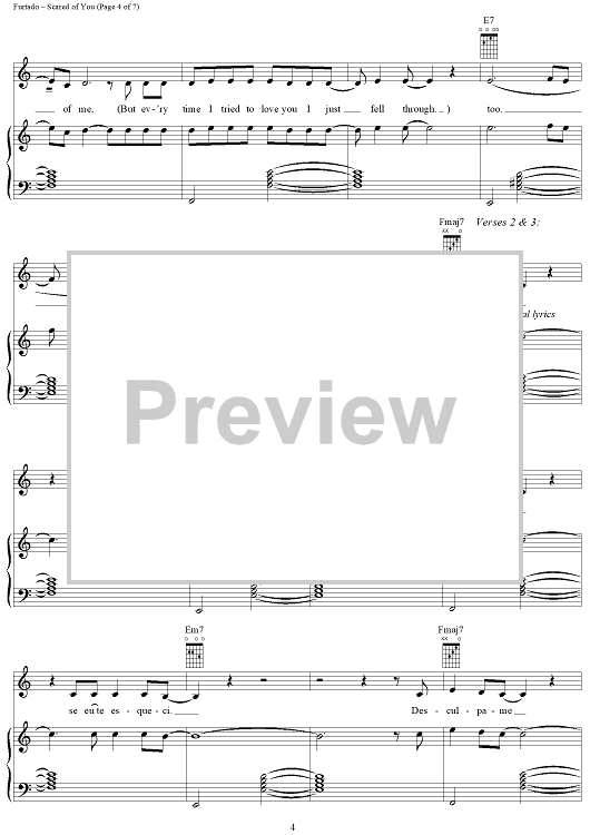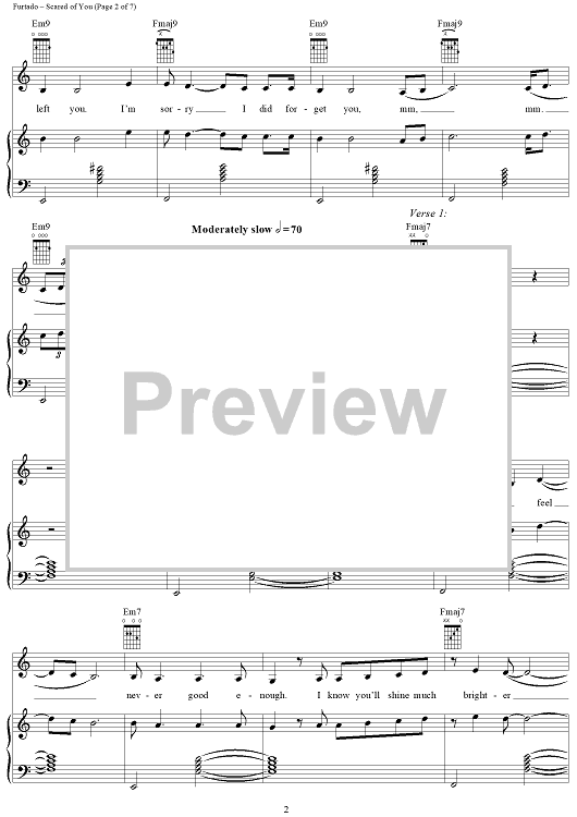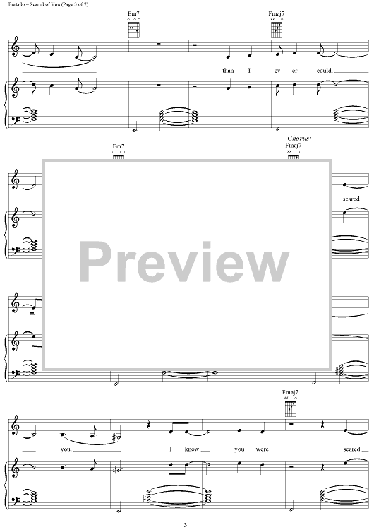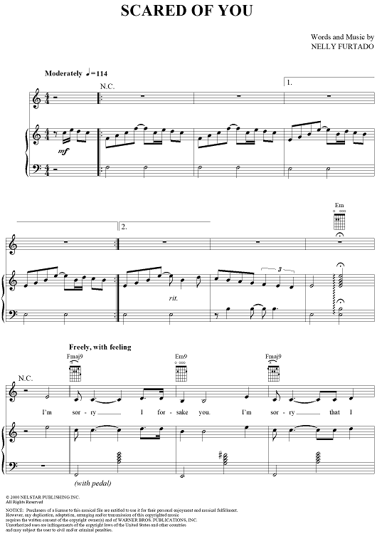 Digital Sheet Music for Scared of You by Nelly Furtado scored for Piano/Vocal/Chords; id:286606
