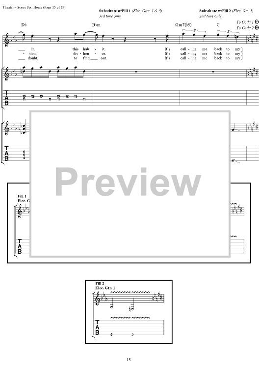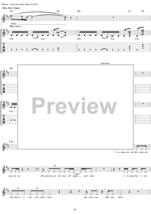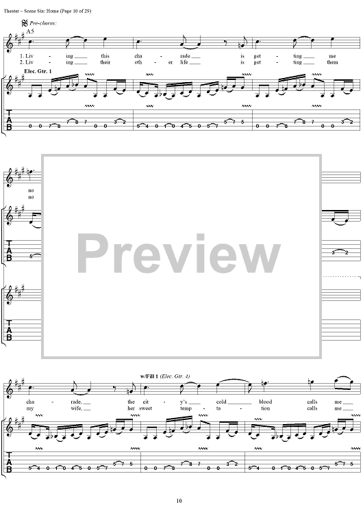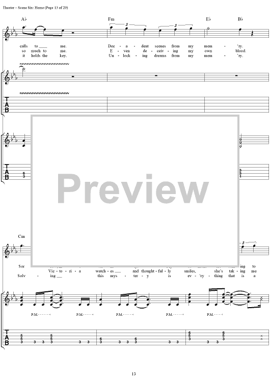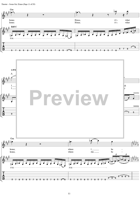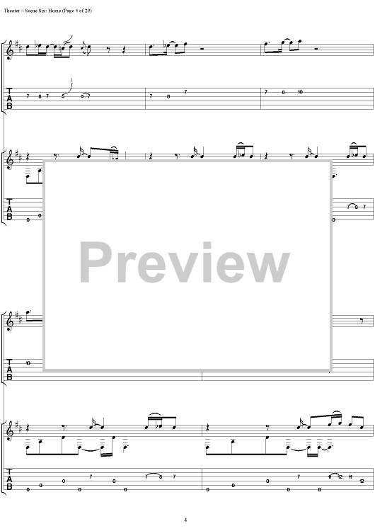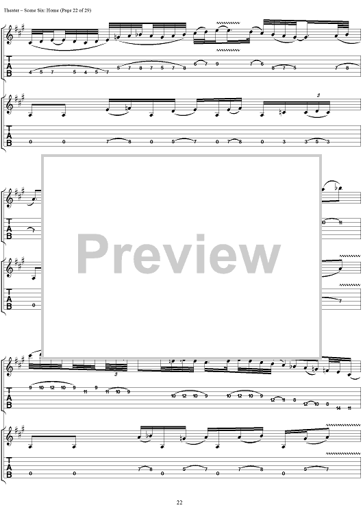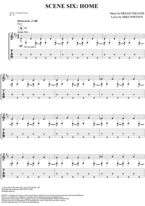 Digital Sheet Music for Scene Six: Home by , Dream Theater, Mike Portnoy scored for Guitar Tab/Vocal; id:286949