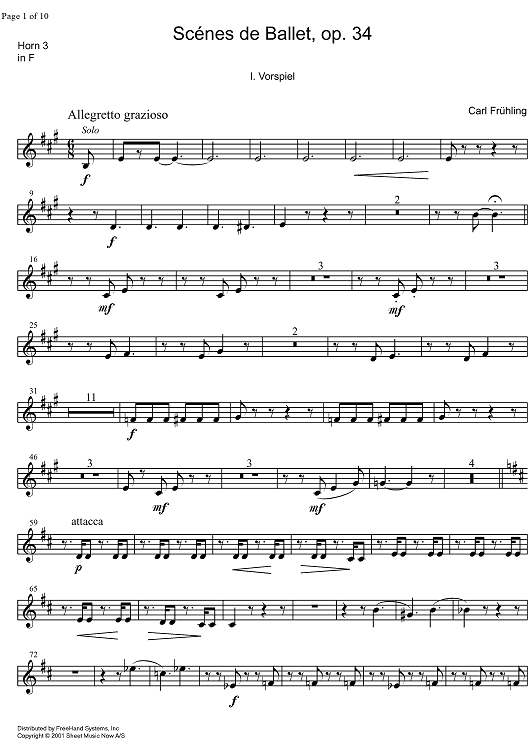Digital Sheet Music for Scènes de Ballet Op.34 - Horn in F 3 by Carl Frühling scored for Orchestra; id:328938