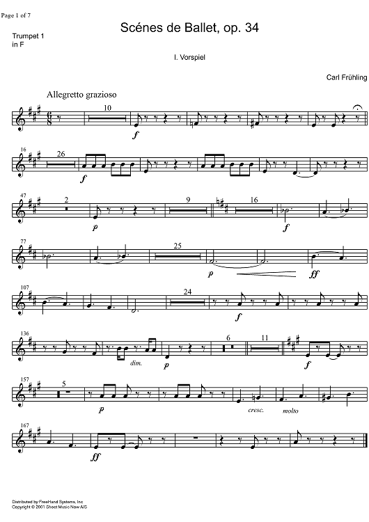Digital Sheet Music for Scènes de Ballet Op.34 - Trumpet 1 by Carl Frühling scored for Orchestra; id:328940